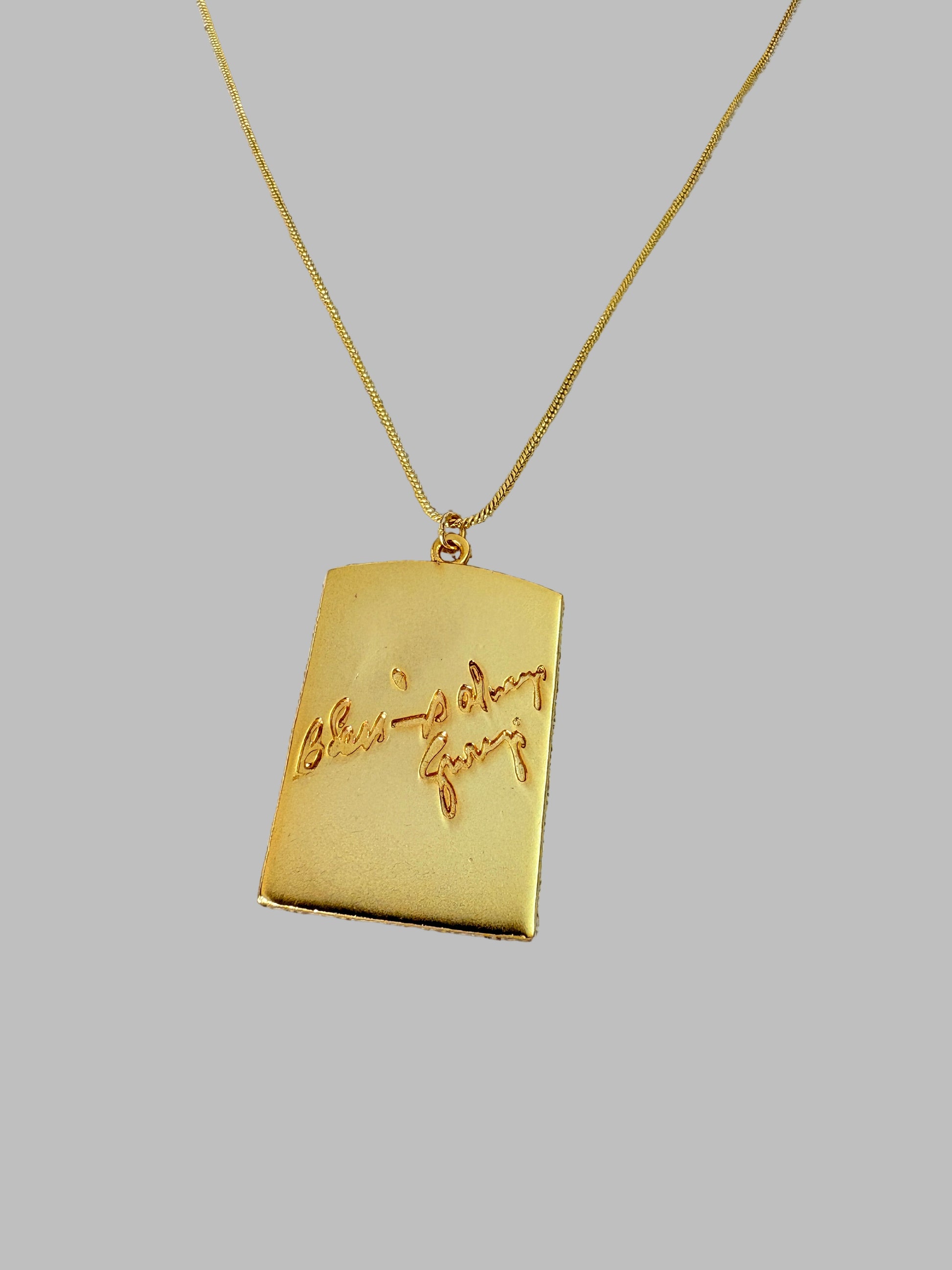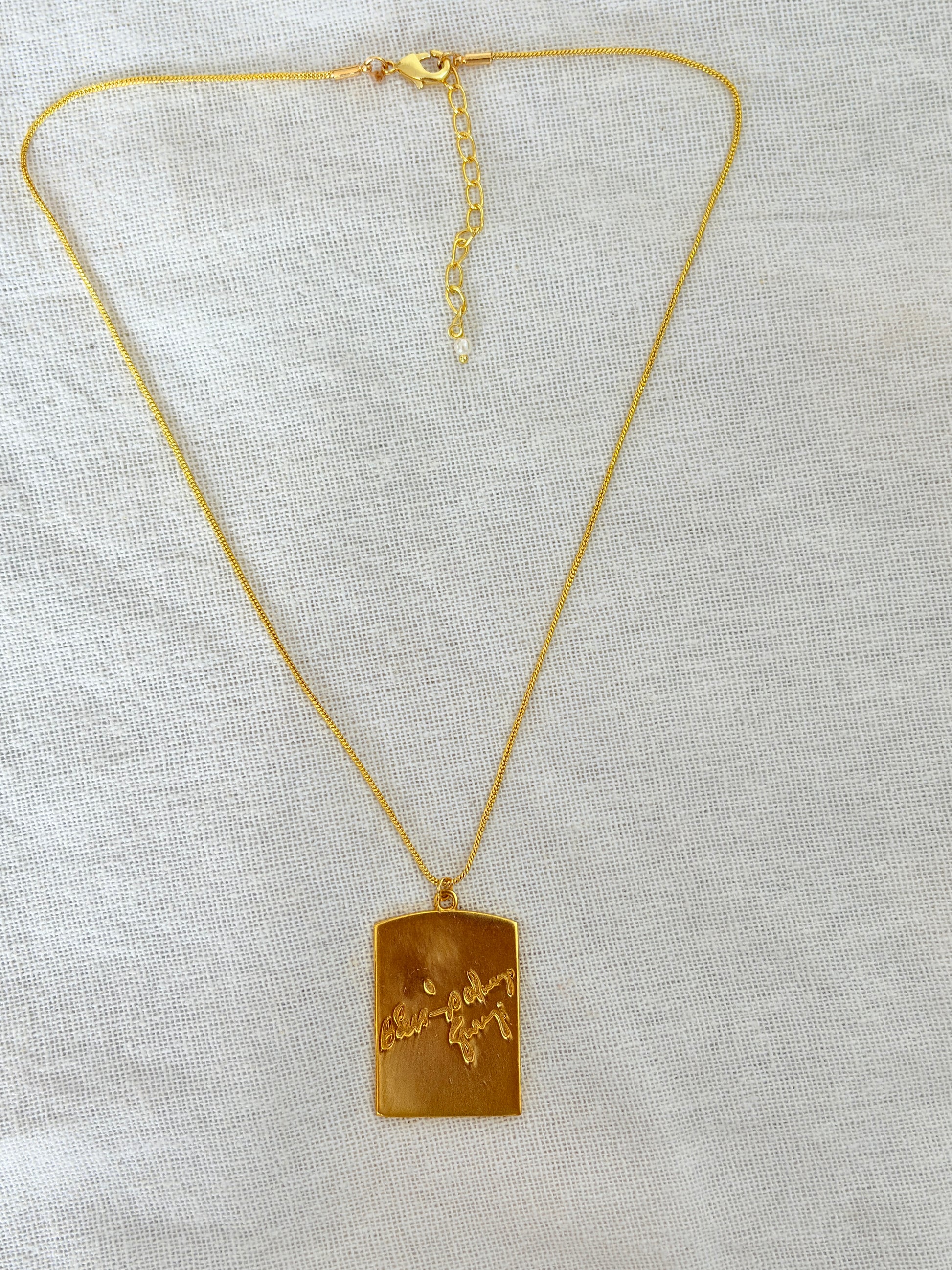 A heartfelt token of gratitude and faith, Aashirya features a sleek rectangular pendant engraved with “Blessing Always Guruji” in graceful script. Crafted from high quality brass and plated in radiant 18K gold, this necklace carries a message of love, protection, and divine grace close to your heart.
