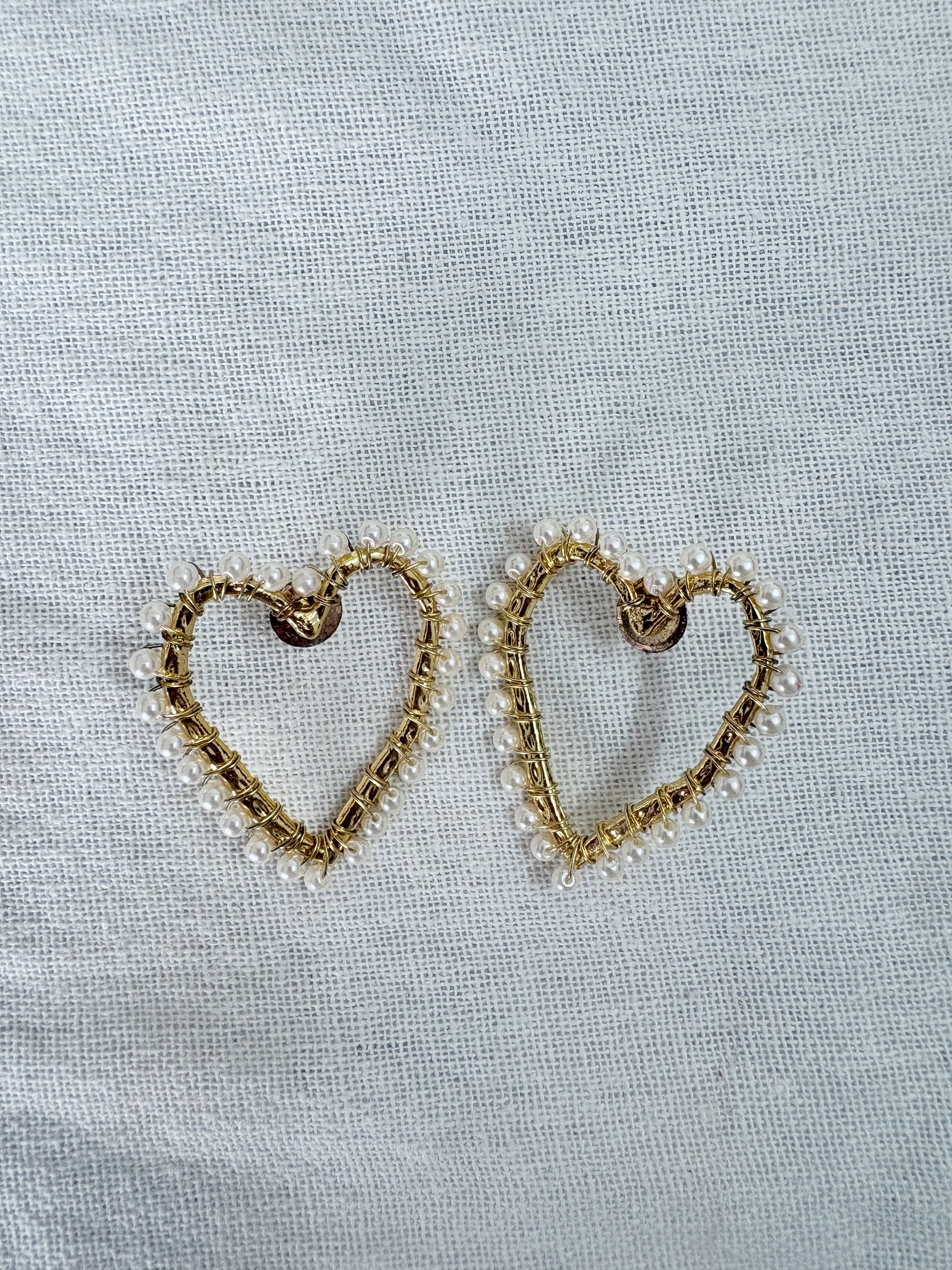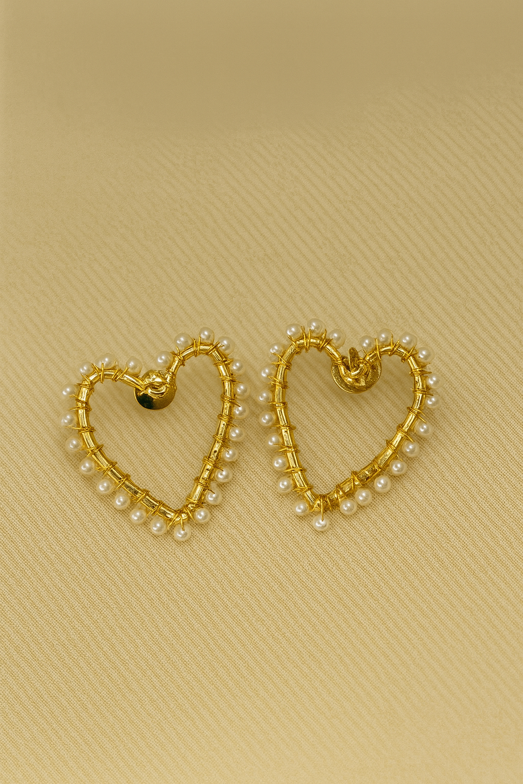 A golden heart delicately framed with lustrous pearls, crafted in brass with 18k gold plating. A romantic keepsake that shines with timeless charm.