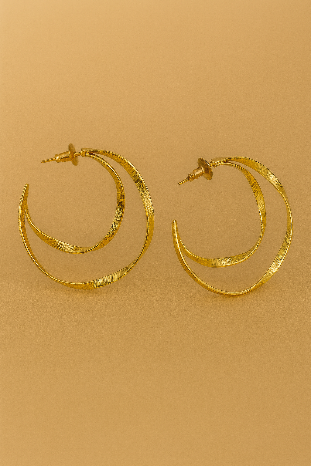 Brass-made and dipped in 18K gold, Leher captures the graceful flow of waves lightweight, fluid, and made to move with you.