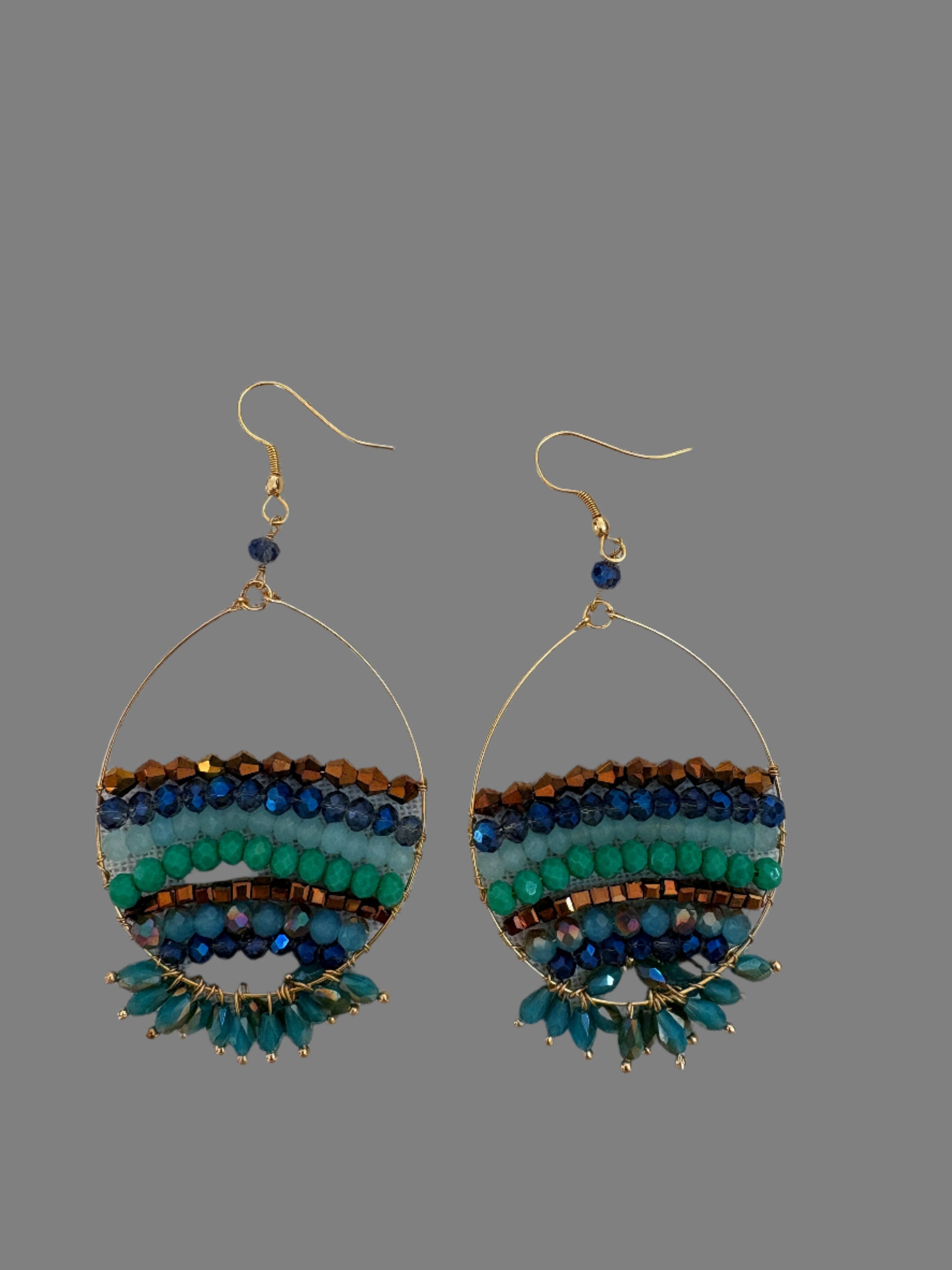 These MEHERBAAN earrings feature a delicate teardrop design, meticulously hand-strung with vibrant crystal beads and elegantly finished with gold-tone wire. Their refined craftsmanship offers a sophisticated splash of color, making them an ideal accessory to enhance and brighten any ensemble with expert finesse.