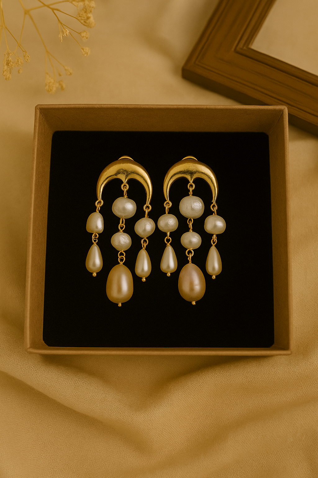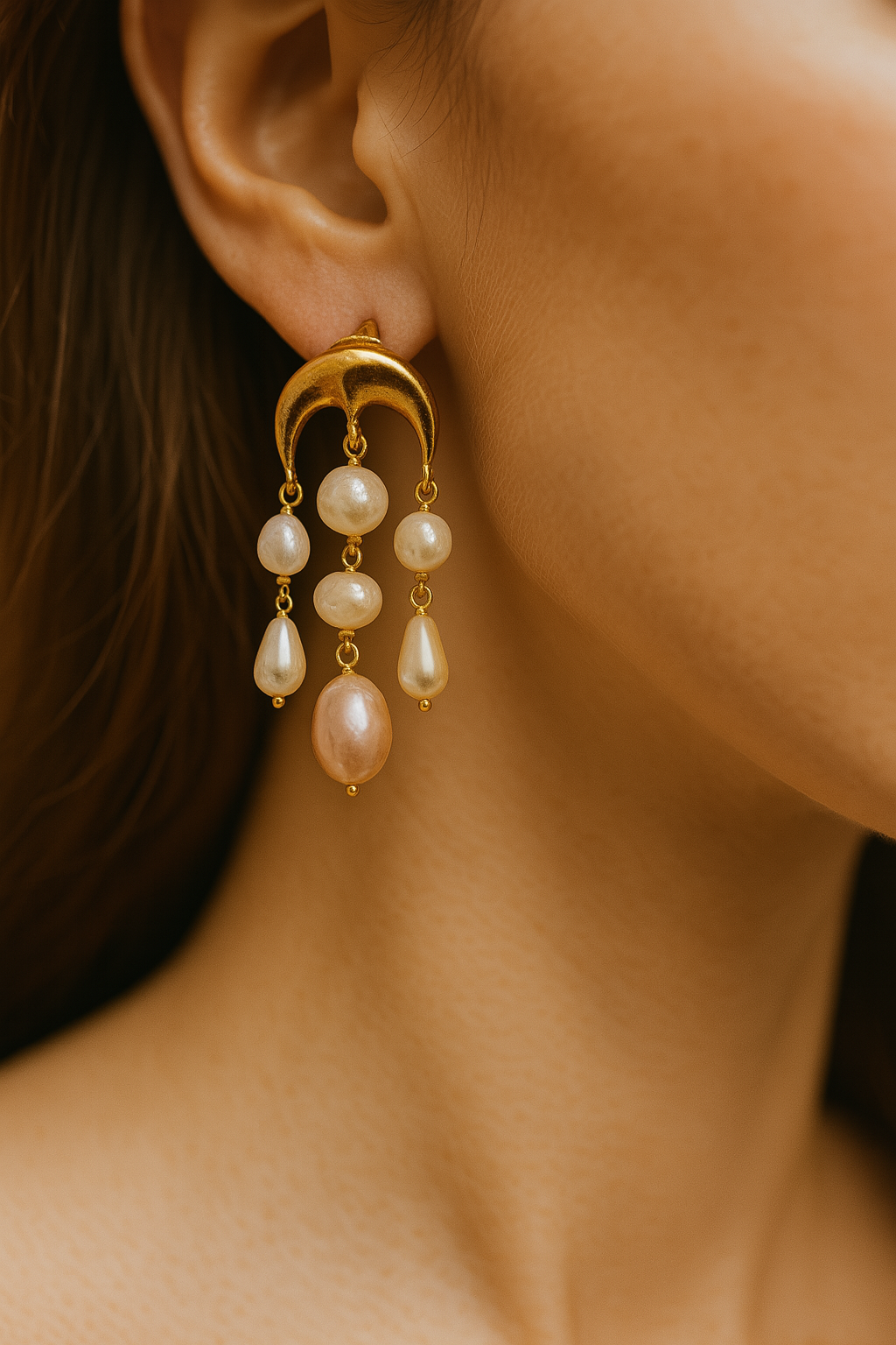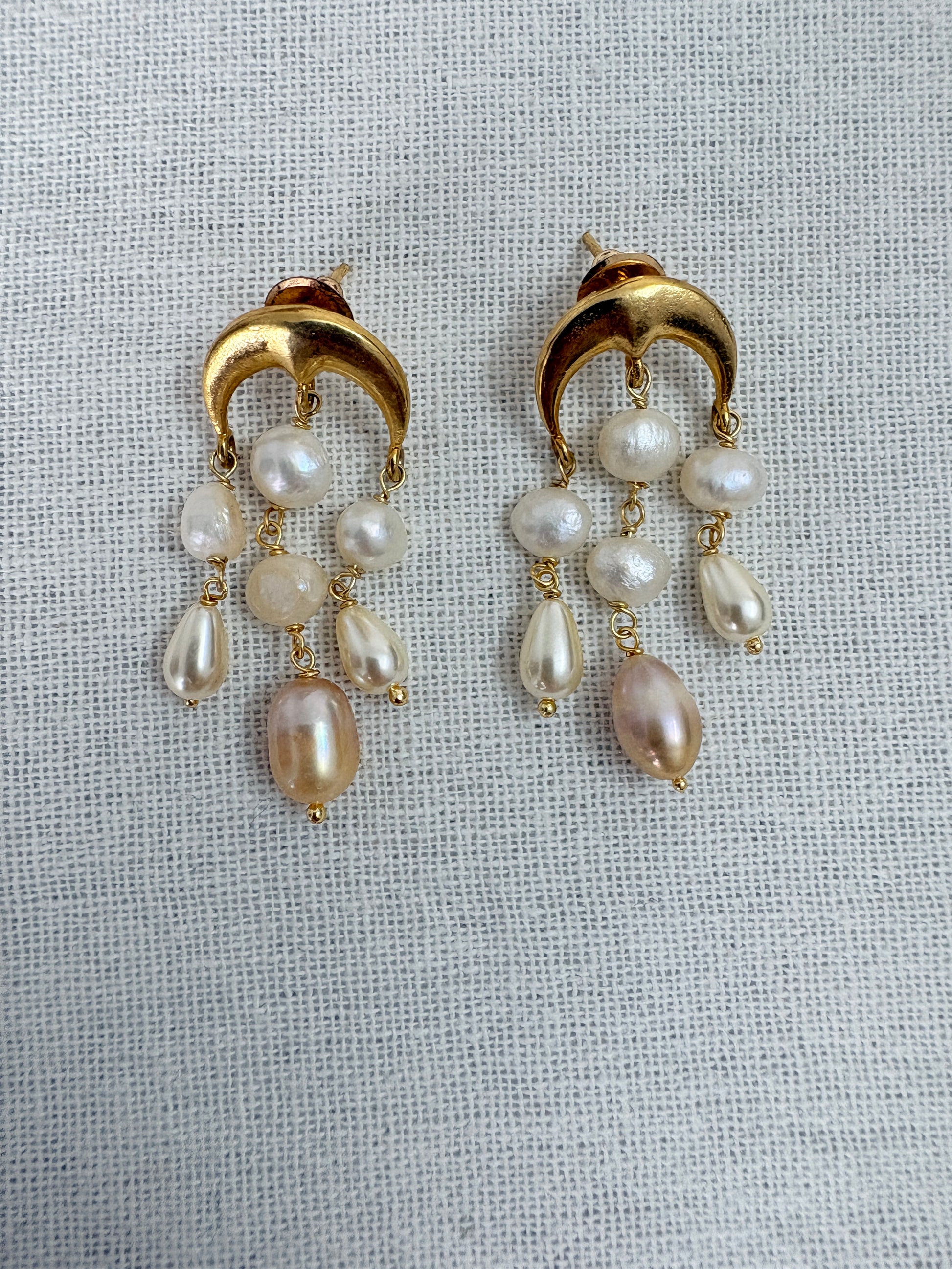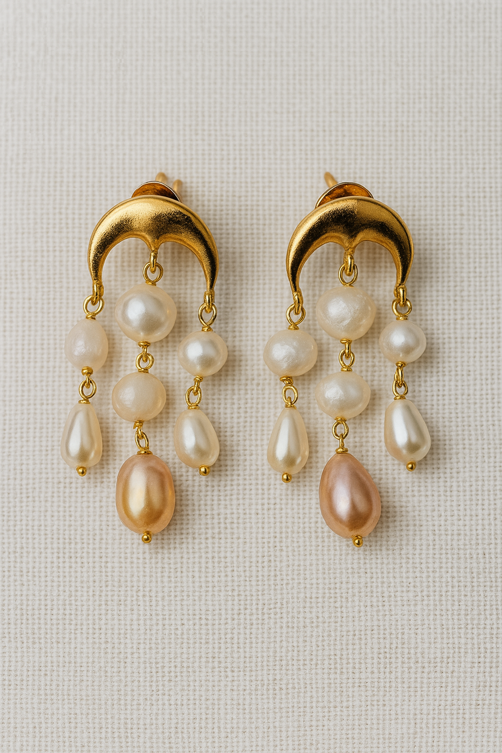 Handcrafted brass earrings featuring a graceful gradation of baroque and freshwater pearls. Finished with 18k gold plating, each pair is lightweight, anti-tarnish, and made to flow with elegance.