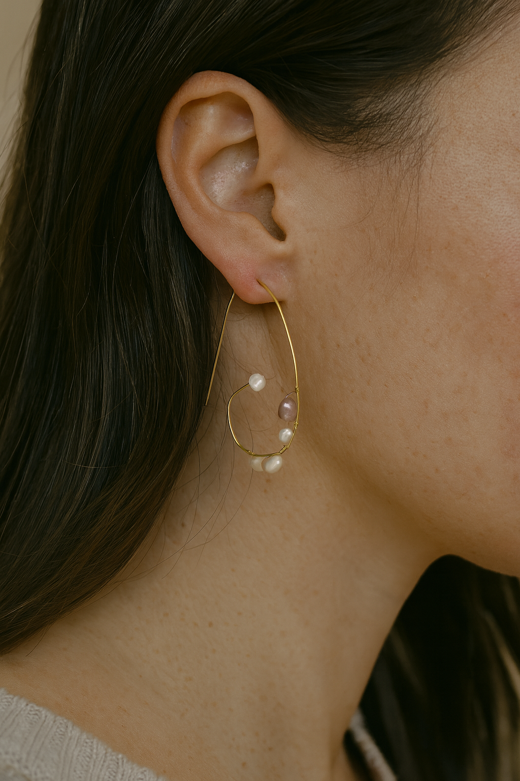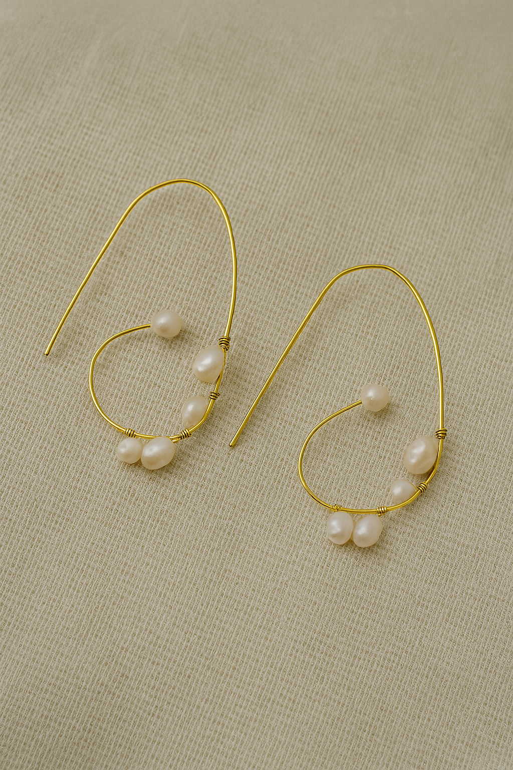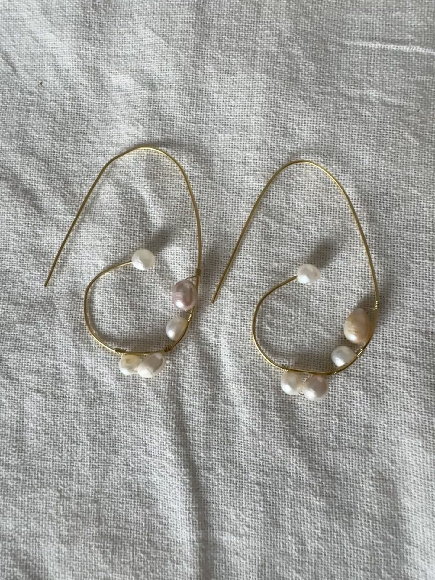 18K gold-plated brass hoops adorned with lustrous pearls, flowing like gentle waves.