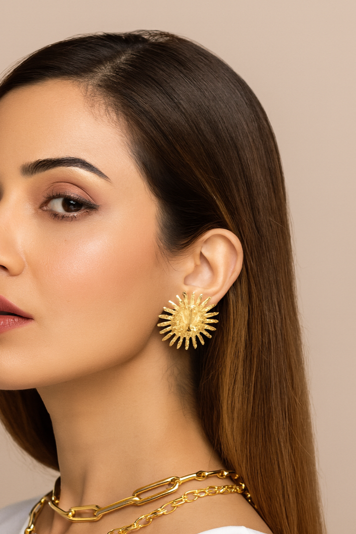 Bold yet graceful, Nooraniyat earrings are crafted in brass with 18K gold plating designed to glow like sunlight and speak your shine.