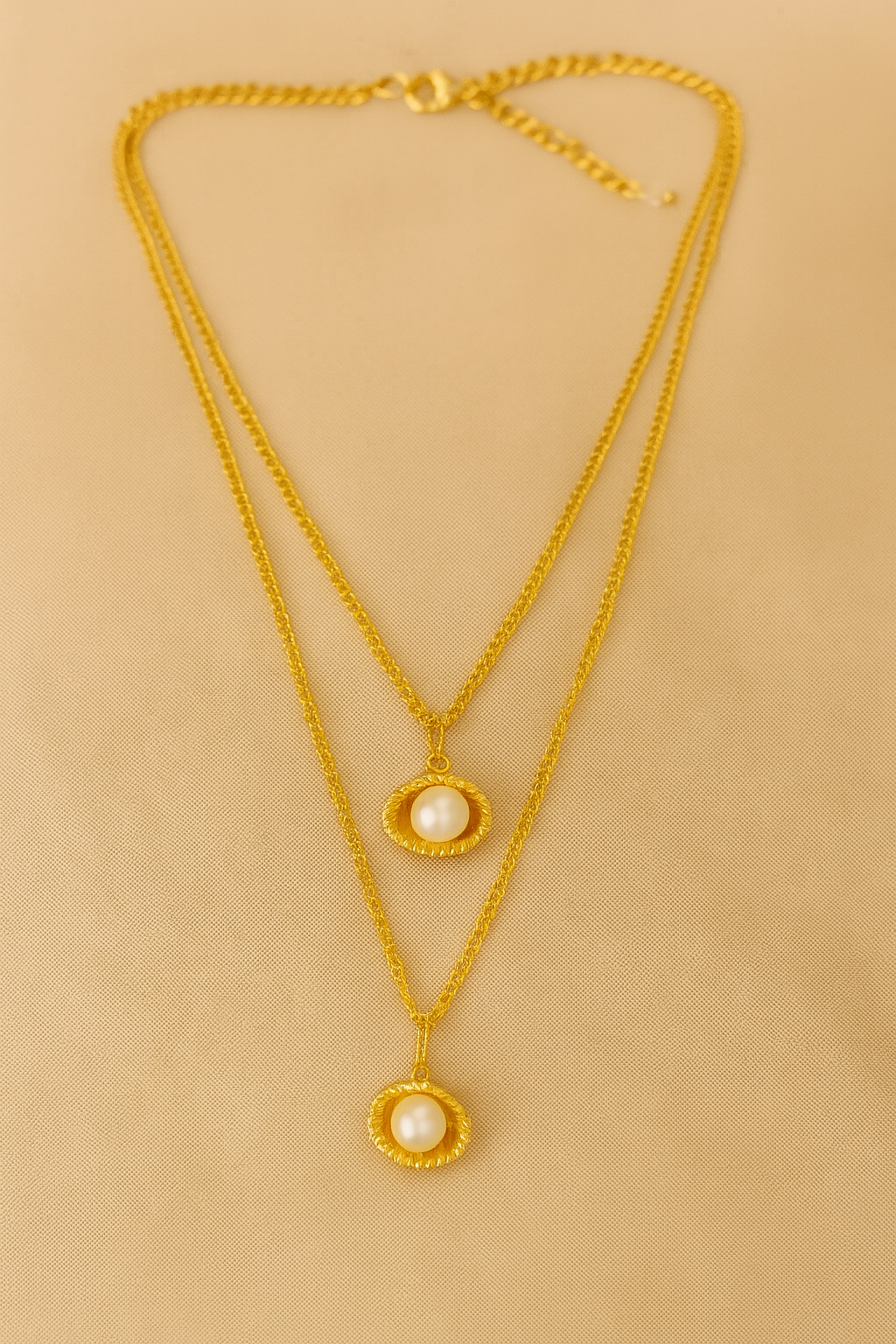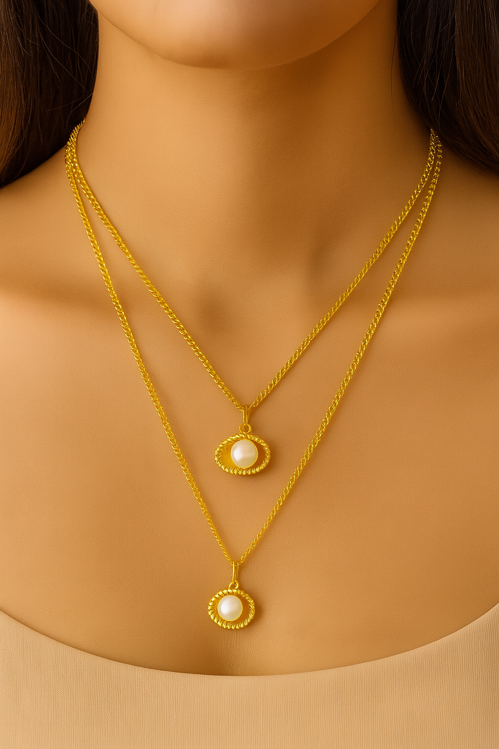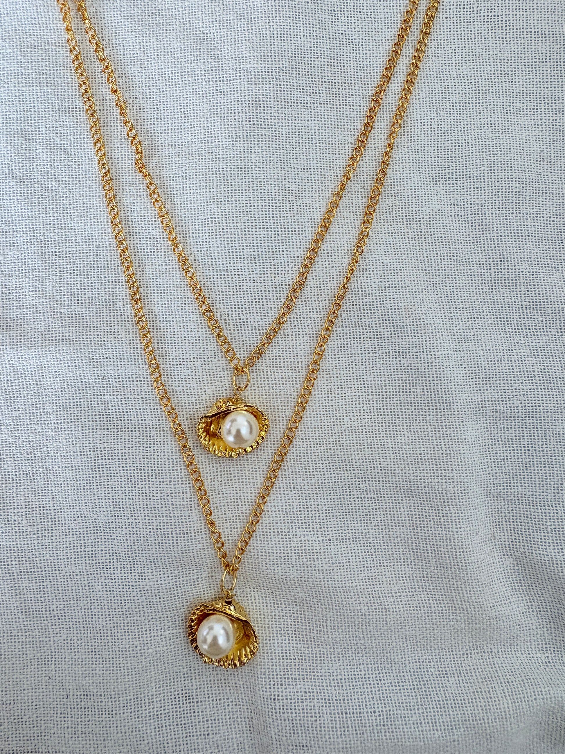 Noorvi is a romantic two-layer shell necklace adorned with lustrous Swarovski pearls. Crafted in a delicate gold-tone finish, it captures the essence of love cradled within the ocean’s embrace perfect for adding timeless elegance to both everyday looks and special occasions.