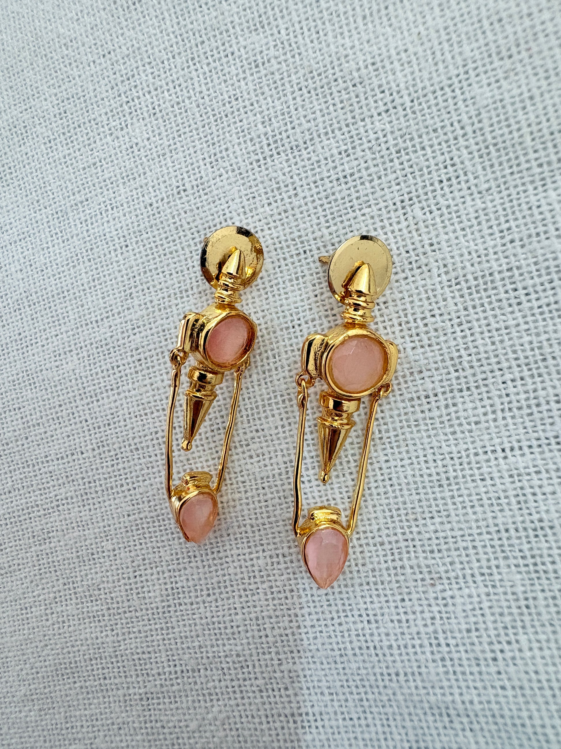 18K gold-plated brass bullet design earrings with semi precious stones lightweight, anti-tarnish, and crafted for bold elegance.