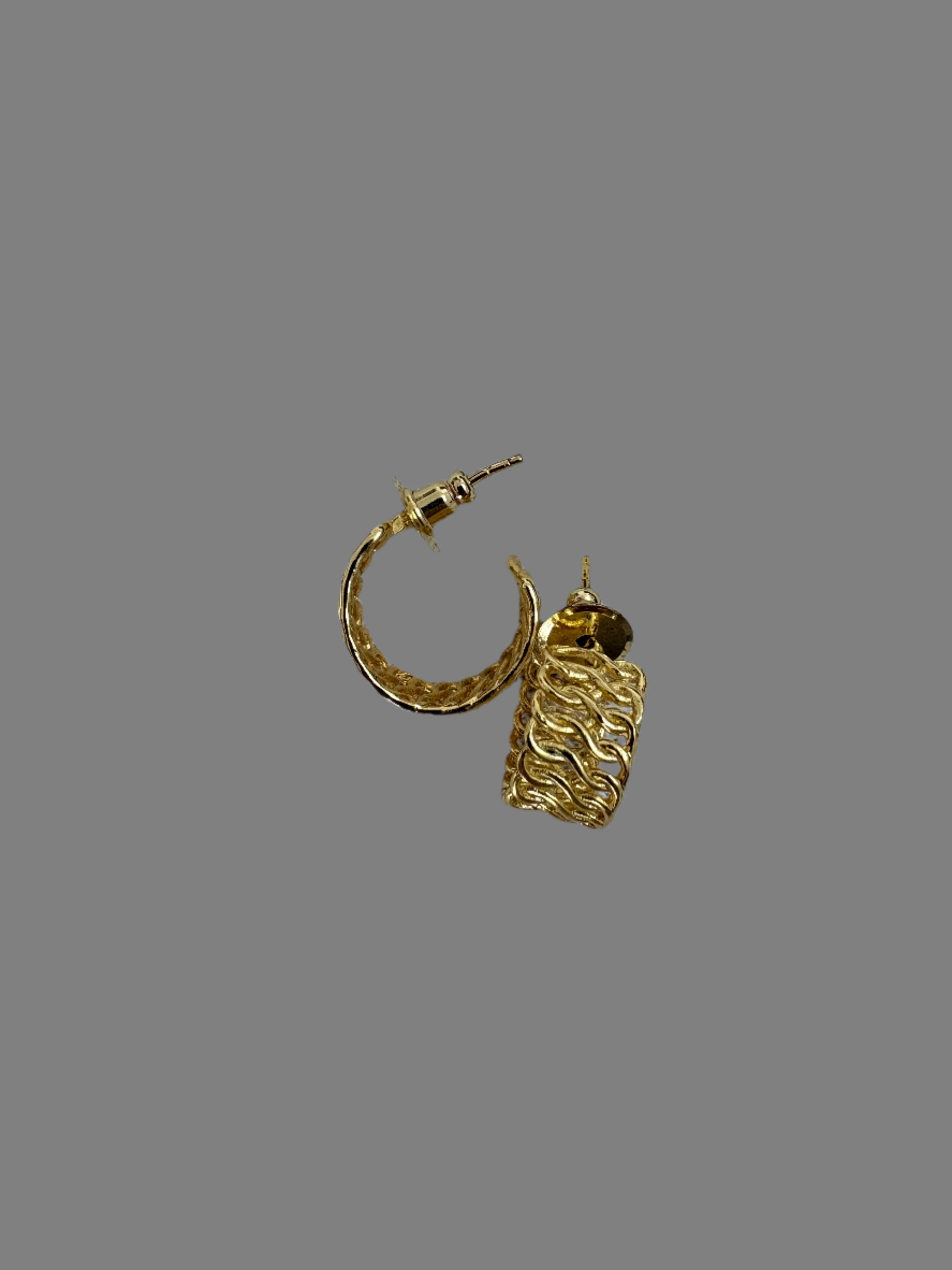 These TARANG earrings feature a sophisticated half-hoop design crafted from brass and finished with 18K gold plating. The textured wave pattern adds depth and elegance, making them a refined choice for both everyday wear and special occasions. Their durable construction ensures lasting shine and style.