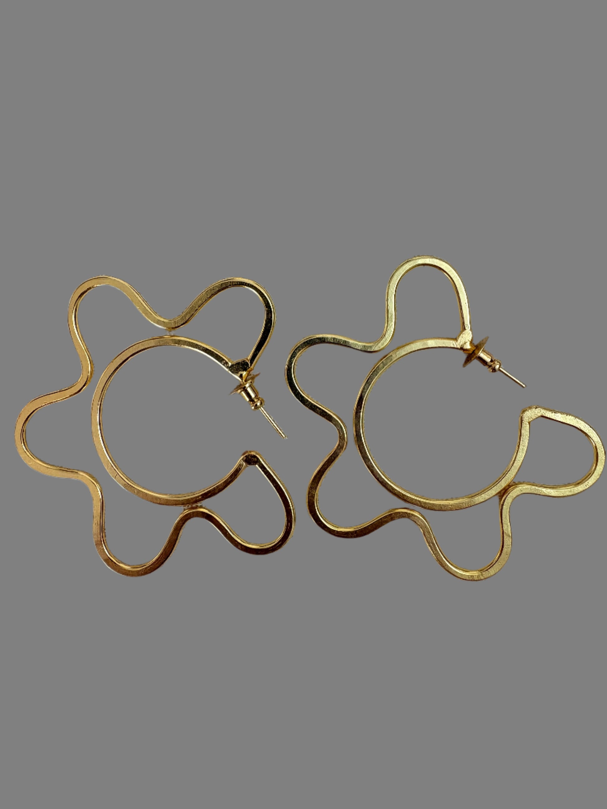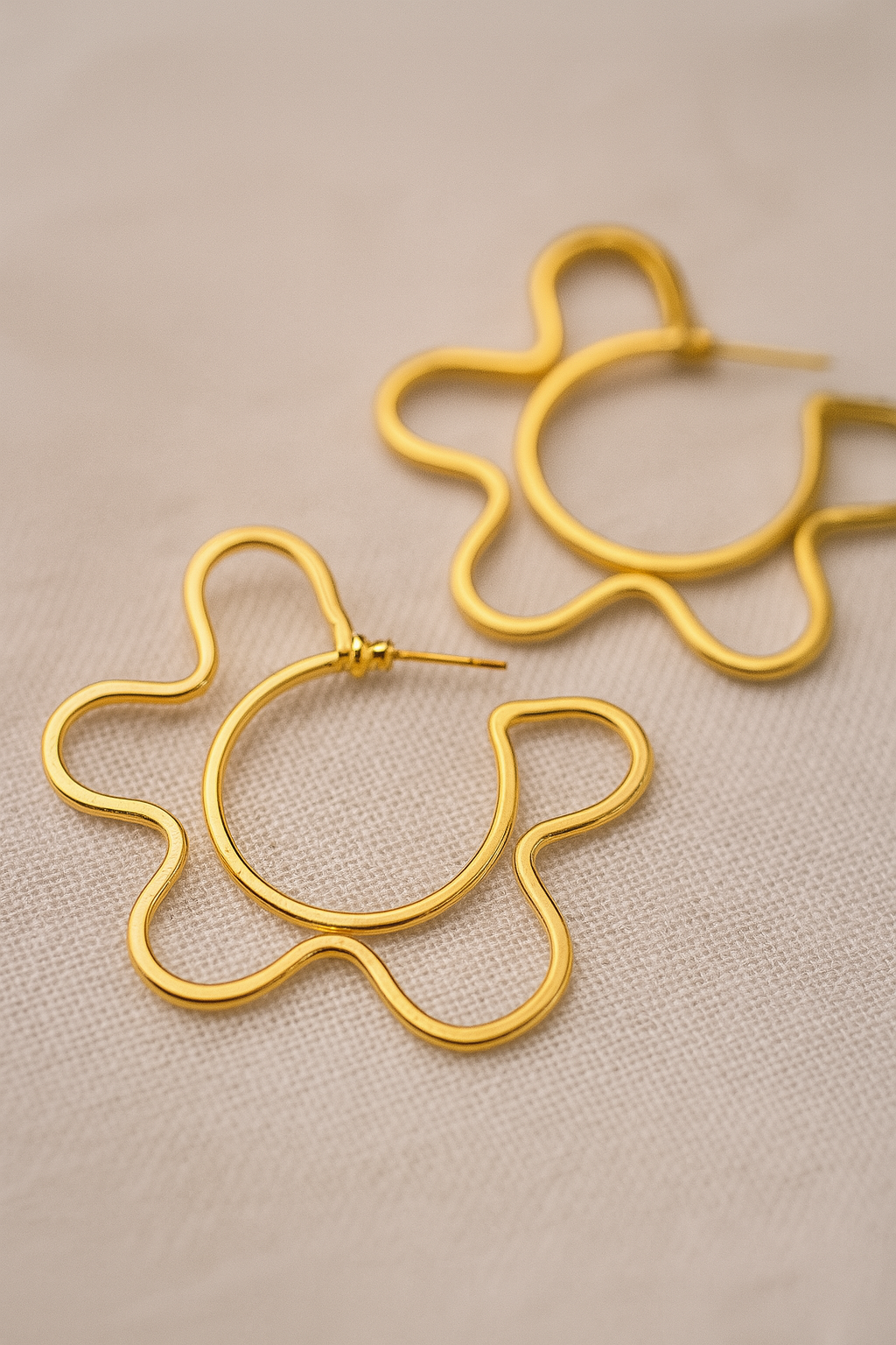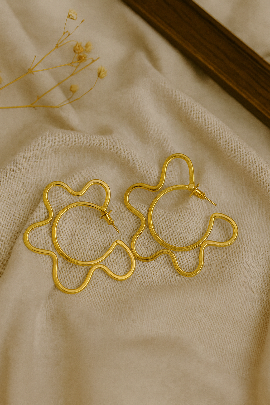 Crafted from brass and finished with luxurious 18k gold plating, the Zyra Earring features fluid, wave-like forms that embody modern artistry and refined elegance. This statement piece combines expert craftsmanship with contemporary design, making it an ideal accessory for those seeking subtle sophistication and timeless style.